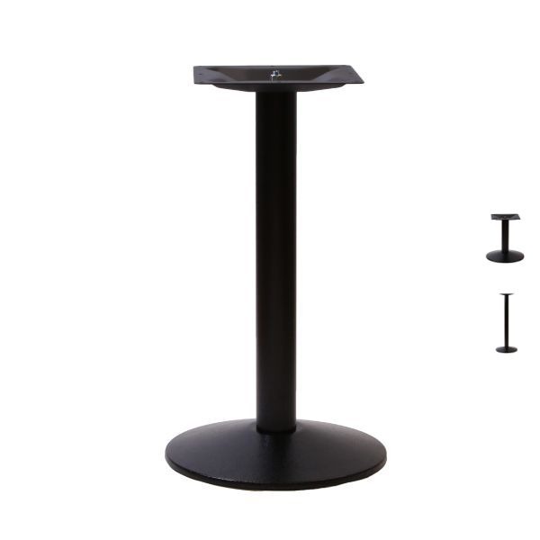 The cast iron base features a hollow bottom that reduces weight without sacrificing stability, while the robust steel column ensures durability. Available in multiple heights, these bases accommodate different tabletop sizes, allowing you to customise your seating arrangements to suit your space and clientele perfectly.